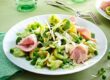Nudeln in Salzwasser gar kochen. Die Knoblauchzehe schälen und durch eine Knoblauchpresse pressen (oder klein hacken). Mit dem Olivenöl, Salz und Pfeffer verrühren und mit den gar gekochten Nudeln verrühren. Die Tomaten waschen und halbieren. Den Rucola waschen und etwas zerkleinern. Tomaten und Rucola unter den Nudelsalat mischen. Zum Schluss den Parmesan grob reiben, Basilikumblätter grob zerkleinern und beides über den Nudelsalat geben (nicht mehr verrühren)